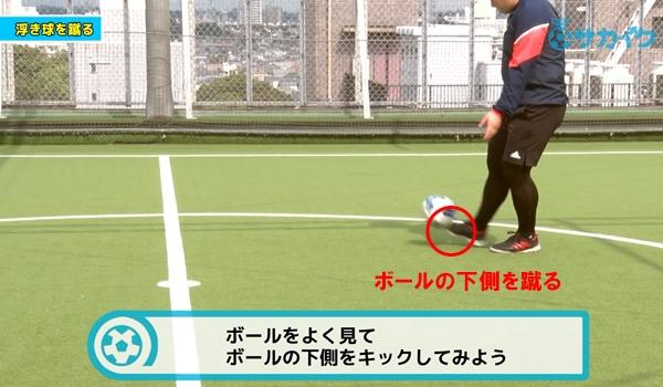 ボールを止める、蹴る、というサッカーの基本中の基本の一つ。浮き球はロングパスなどで使うふんわりとした軌道で滞空時間の長い球。