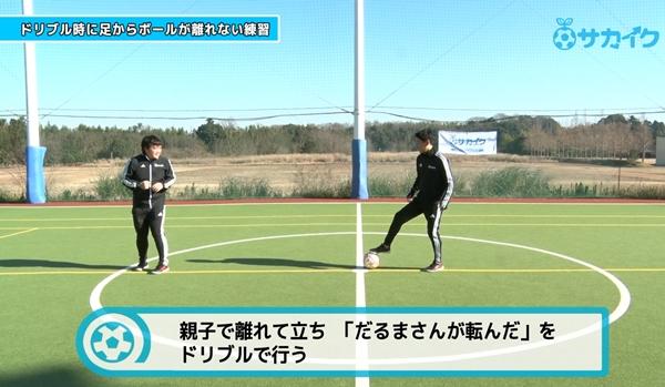 サカイクがお届けする『親子で遊びながらうまくなる!サッカー3分間トレーニング』。今回は初心者に多い、「ドリブルしている時にすぐボールが足元から離れてしまう、足の近くでドリブルをすることができない」という悩みを改善するトレーニングをご紹介します。広大なスペースがなくても公園などのちょっとした場所でできるので、ぜひ親子で遊びながらチャレンジしてみてください。