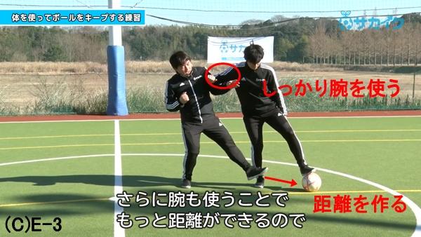 試合では相手チームがボールを奪いに来ます。相手にボールを取られないようにするには、体を使って防御することが大事ですが、初心者のうちはなかなかうまくできないもの。