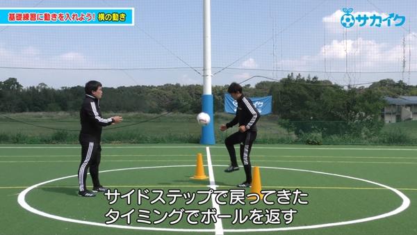 試合前のウォーミングアップなどで取り入れているチームも多いですが、その場でコントールするような練習がほとんど。しかし、試合中は相手選手にボールをカットされない位置で受けるため、サイドステップで横に動いて受ける動きが必要になることがあります。